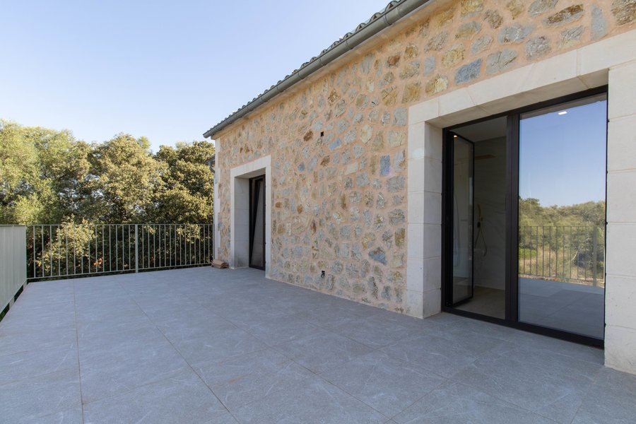 This lovely house with pool and garden is located in the area of Sencelles in the central part of the island. The two level property measures about 300 square meters built on a plot of 7800 square meters and is surrounded by nature. The ground floor has an entrance hall, a double bedroom, a bathroom with shower and the living /dining room with open kitchen. The living / dining room has exit to the terrace and the outside area with pool. On the first floor there are two double bedrooms with bathrooms en suite with shower and the master bedroom with dressing room, bathroom en suite with shower and bathtub. On this level there is also a large terrace to enjoy and relax.The property covered with natural stone is charming and bright. The highlight is definitely its pleasant outdoor area. Ideal for all those who are looking to live in a peaceful environment. The city of Inca is only a few minutes away by car and Palma about 20 minutes away.