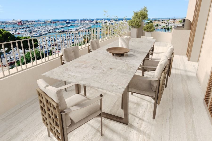Dieses atemberaubende Penthouse ist Teil eines der aufregendsten neuen Bauvorhaben im Zentrum von Palma. Nur wenige Minuten vom charismatischen Viertel Es Jonquet und der idyllischen und bald fertiggestellten Palmenpromenade entlang des Paseo Maritimo entfernt. Diese Wohnung mit drei Schlafzimmern und einer herrlichen 65 m2 grossen Südterrasse mit Meerblick und privatem Pool wird Ihnen den Atem rauben, sobald Sie eintreten. Sie haben die Wahl zwischen zwei verschiedenen, hochwertigen Innenausstattungen, hier das Beispiel EL MONTE, eine Kombination aus dunklen Hölzern, strukturierten Wänden und einer hellen Farbpalette sowie einer Edelstahlküche sorgen für einen Hauch von industriellem Schick. Das Gesamtkonzept ist anspruchsvoll und modern, passend zur Innenarchitektur des Gebäudes. Der 175 m2 grosse Wohnbereich, die Küche und die geräumigen Schlafzimmer wurden mit Blick auf Komfort und zeitlose Modernität gestaltet, wobei der Zugang nach draußen optimiert wurde. Die Zimmer sind mit hochwertigen Geräten und innovativen Technologien ausgestattet und bieten einen einzigartigen Blick über den Paseo Maritimo auf den Hafen. Bestellen Sie noch heute die ausführliche Broschüre und fragen Sie uns nach den anderen verfügbaren Einheiten.