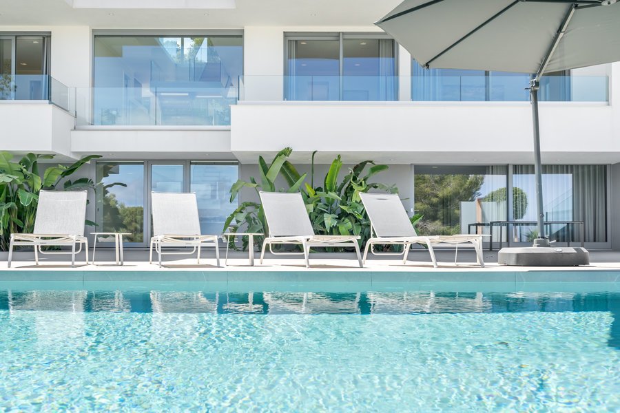 Diese wunderschöne Villa mit Pool und Meerblick hat eine privilegierte Lage in einem Wohnviertel von Palmanova, im Südwesten der Insel. Das neu gebaute Anwesen hat 600 m² auf einem Grundstück von etwa 1220 m², und besteht aus drei Ebenen plus einer erstaunliche Dachterrasse und einem internen Aufzug. Der Außenbereich mit Pool und die insgesamt 368 m² großen Terrassen sind ein wahres Juwel, um den Außenbereich und den Meerblick zu geniessen. Die Villa verfügt über fünf Schlafzimmer, fünf Bäder en suite, Wohn-/Esszimmer mit offener Küche und Gäste-WC. Außerdem bietet sie eine Waschküche und eine Garage. Eine einzigartige Gelegenheit, eine Villa von so hohem Standard zu erwerben wo Sie komplette Privatsphäre und die Ruhe von Mallorca geniessen können. Palma ist nur etwa zwanzig Minuten mit dem Auto entfernt.