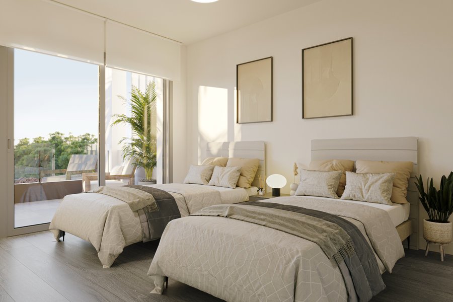 This attractive residential complex is currently under construction in the popular Colonia Sant Jordi, 300 metres from the famous Estany and Es Trenc beaches and the Salinas! A total of 24 two and three bedroom dwellings of various types are being built here. Ground floor flats with large gardens, maisonettes and penthouses with fantastic terraces and all with beautiful communal areas and a large pool with sun loungers, a jacuzzi and a beach area and interior paths, embedded in the same residential complex. The modern properties will all have large windows to make the most of Mallorca's long hours of sunshine and enjoy the natural light. All units will have a parking space and a storage room for all kinds of sports equipment, etc. This is a project that you will fall in love with and that will make you feel at home. Order the detailed brochure today and reserve your favourite flat soon. If you wish, your home can even be furnished for an extra charge, with various furnishing options available.