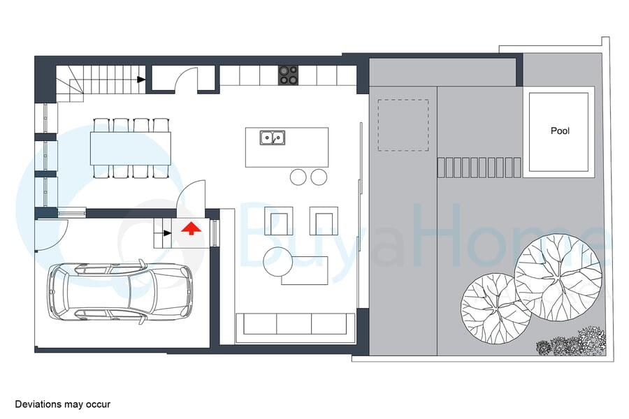 This spacious 192 sqm three-bedroom townhouse in Molinar offers an exceptional combination of modern comfort, elegant design, and prime coastal location — just a few minutes’ walk from the seafront promenade and the beach. At street level, the property features a private parking garage with direct access to the home. Upon entering, you are welcomed into a stunning oasis characterised by high ceilings, premium materials, and high-end finishes throughout. The bright and airy living area is flooded with natural light thanks to a striking floor-to-ceiling window wall, seamlessly connecting indoor and outdoor living. The open-plan layout includes a generous dining area and a high quality kitchen, perfect for both everyday living and entertaining. The living space opens onto an impressive 60 sqm private terrace garden with swimming pool, creating an ideal Mediterranean retreat. Upstairs, the master bedroom enjoys garden views and features an elegant en-suite bathroom. Two additional bedrooms and a second bathroom complete this level, making the home ideal for families or guests. At the top of the property, a spectacular rooftop terrace with sea views provides the perfect setting for relaxing with family and friends. Designed by renowned architect Rafael Vidal, this townhouse is built to the highest standards, featuring natural stone flooring, underfloor heating throughout, and hardwood door and window frames. The result is a refined yet welcoming home that blends architectural excellence with comfortable living.